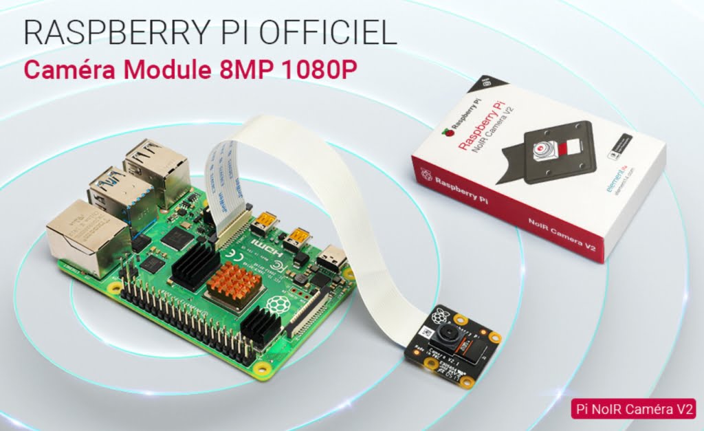 - Avec les LED infrarouges, la raspicam NoIR 8M permet de prendre en photo ou en vidéo la faune et la flore de nuit ou pour surveiller un territoire ou un domicile
